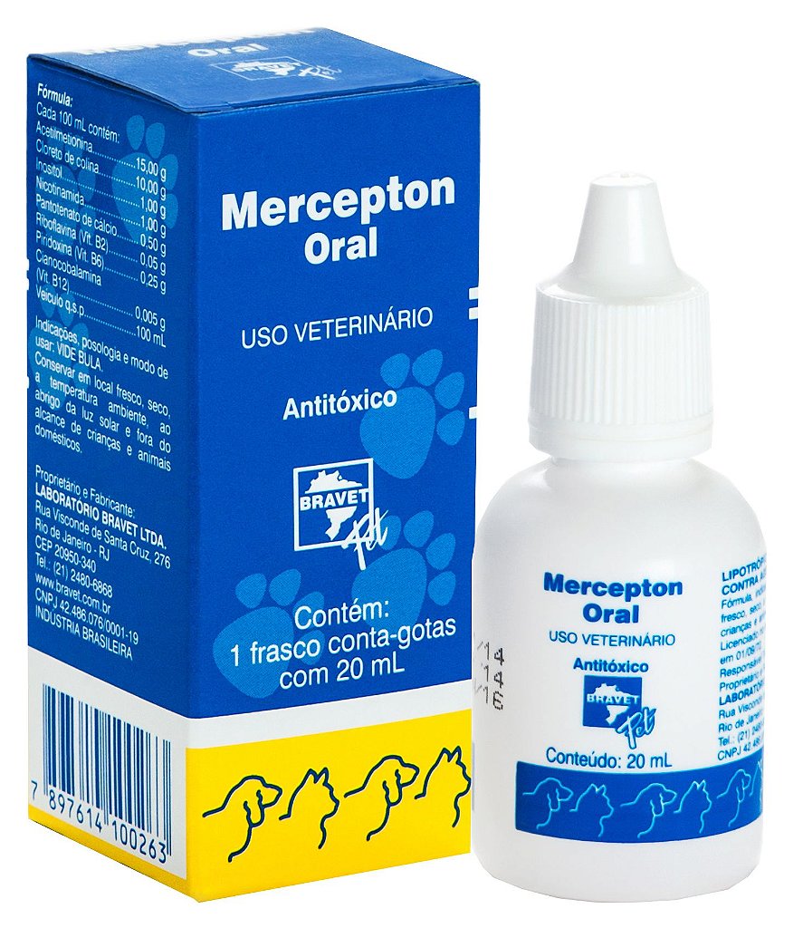 Mercepton Oral é um medicamento antitóxico para cães e gatos, que estimula o processo digestivo e a eliminação de toxinas do organismo. Ele é indicado para casos de intoxicações por alimentos deteriorados, plantas tóxicas ou medicamentos em excesso. Também auxilia nos casos de intoxicações medicamentosas acidentais como o uso excessivo de vermífugos, sulfas e outros antibióticos, assim como, qualquer outro tratamento prolongado que produza distúrbios digestivos. Alguns benefícios do Mercepton Oral são: